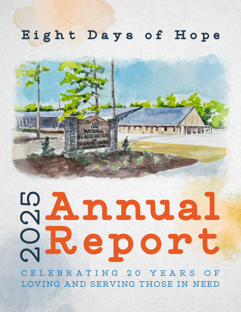 Thank you for your continued support of Eight Days of Hope. We cannot do all that God has called us to without your prayers, volunteering, and donations!